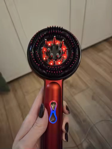 Equipado con 72 puntas redondeadas y luz roja de 630 nm, este dispositivo masajea profundamente, estimula la circulación y nutre las raíces para promover un cabello más denso, brillante y lleno de vida.