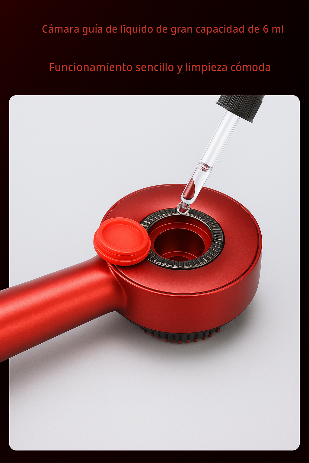 Además, su depósito integrado de 6 ml y el sistema de 8 rodillos permiten aplicar de forma uniforme cualquier sérum o tratamiento capilar mientras masajea, maximizando su absorción y resultados.